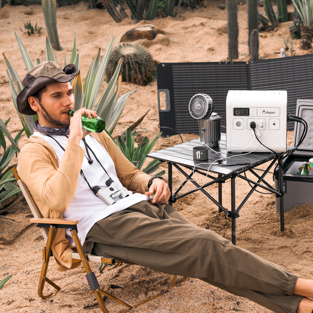 Arkpax Titan 1200W UltraTemp Power Station: Master extreme conditions with storage temps from -40°C/-40°F to 75°C/167°F and operational temps from -25°C/-13°F to 50°C/122°F. Boasts 1200W power, 2400W surge, 1000Wh capacity, 2 AC/4 DC ports, 30ms UPS, 35 BMS, 3.8hr AC and 300W solar recharge, all in a 9.2kg/20lbs compact unit with built-in SOS light. Ideal for year-round outdoor adventures and emergencies.